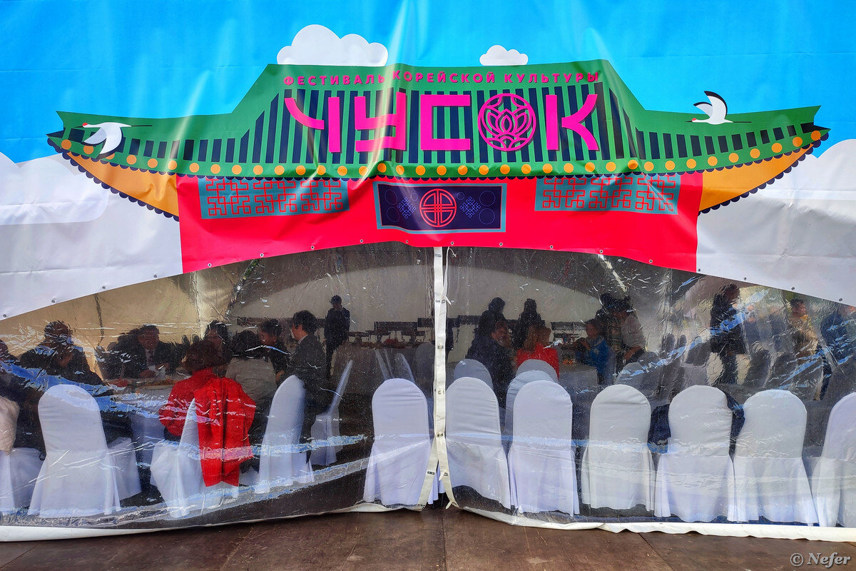 Тихо, без рекламы и анонсов прошел фестиваль корейской культуры "Чусок" на ВДНХ. Узнали о нем случайно, просто проходили мимо. На сцене проходил концерт. Пели корейские тетушки, были корейские танцы, но также были и казахские танцы, и русские. На таких фестивалях обычно готовят национальные блюда. Подумала, что поем корейской еды. Продавали токпокки, культок, кимпаб и конечно кимчи. Но очереди отпугнули, не так уж я голодна, чтобы тратить час своего времени впустую. Очень удивил плов, не видела его в Корее, ни в Южной, ни в Северной. По соседству в павильоне "Казахстан" устроили выставку корейского фарфора и мастер-классы. Посередине стоял большой бильярдный стол, который оберегали охранники. Народу было много. Зашли, попали в какой-то хаос, посмотрели, ничего не поняли и ушли. Ханбок у меня и дома есть, могу сфотографироваться в любое время. В общем, как-то не зашло. Единственное, где было весело, оживленно и достаточно свободно, это зона народных игр. Лянга похожа на сокс. Надо отбив