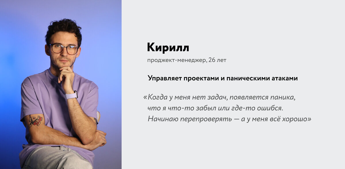 Так подкралась лёгкая тревожность, которая со временем переросла в перманентное чувство тревоги и апатии: и днём, и ночью, и даже в выходной. Когда у меня нет задач, появляется паника, что я что-то забыл или где-то ошибся. Начинаю перепроверять — а у меня всё хорошо. В таком состоянии любая мелочь может вогнать в дикое переживание, а сосредоточиться на своих задачах становится сложнее и сложнее.