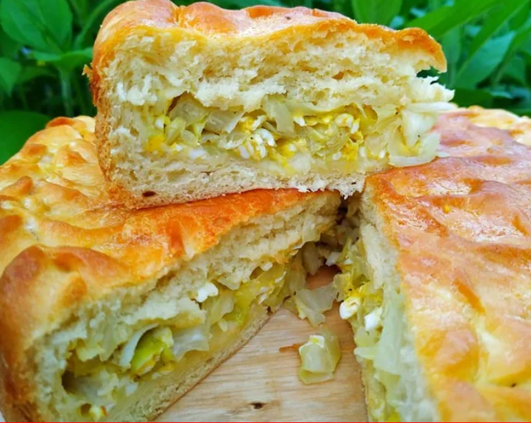 Пирог с капустой и яйцом Ингредиенты: Для теста: - 4 яйца; - 1 ст.л.сахара; - 300 г. муки; - 1 ч.л.разрыхлителя; - 1 пачка творога 5% жирности (250 г.); - 125 г. масла сливочного. Для начинки: - 1 небольшой вилок капусты белокочанной; - 4 вареных яйца; - 50 г. сливочного масла; - 1/3 ч.л.базилика; - 1 яйцо для смазывания; - соль черный молотый перец по вкусу; Приготовление: Творог растираем с рубленным сливочным маслом, добавляем муку, яйцо, сахар и разрыхлитель. Вымешиваем тесто и охлаждаем его в морозильной камере минут 30. Капусту разбираем на листья, нарезаем их на квадраты 2 см, заливаем горячей водой в глубокой сковороде и оставляем тушиться с закрытой крышкой минут 25. Затем откидываем на дуршлаг, слегка отжимаем, добавляем масло, рубленное яйцо, подсаливаем посыпаем базиликом, перемешиваем тесто скалкой раскатываем в 2 пласта разного размера. Большой лист перемещаем на смазанный маслом противень. Сверху помещаем начинку. Накрываем начинку вторым пластом теста, края защипываем