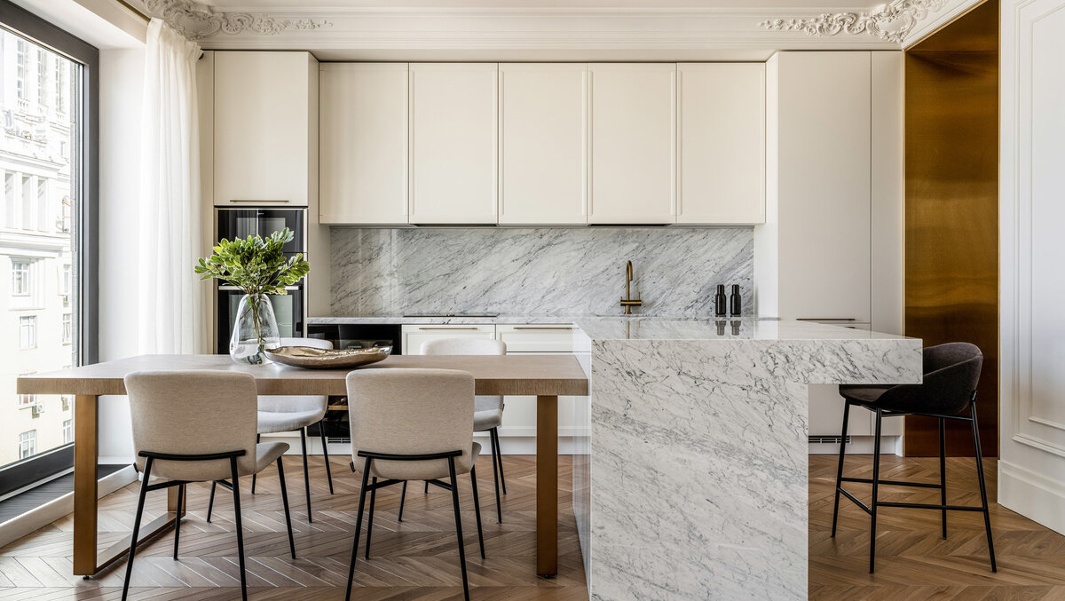 Студия Balcon оформила квартиру в столичном ЖК «Сады Пекина» для коллекционера искусства ОБЩИЕ СВЕДЕНИЯ Тип недвижимости: квартира- новостройка Где находится: Москва, ЖК «Сады Пекина» Метраж: 112 м2 Стиль: современная классика Автор проекта: дизайнер Ольга Лагодная, студия Balcon, т. +7 (495) 120-04-36 «Заказчик пришел к нам с уже готовой планировкой и четким представлением, что и где должно находиться, — рассказывает дизайнер Ольга Лагодная, студи Balcon. — Мы немного ее скорректировали, но в целом она была удачной». Планировка, которую заказчик продумал до мелочей, делила квартиру на две части — общественную и приватную. В первой размещалась просторная кухня-гостиная с большими окнами в пол и красивым видом на Садовое кольцо, во второй — спальня, кабинет, который можно быстро превратить в детскую, и две ванных комнаты, одна из которых с душевой. Интерьер полностью отражает образ жизни хозяина дома, его потребности и привычки. «В ходе обсуждений мы узнали, что наш клиент планирует при