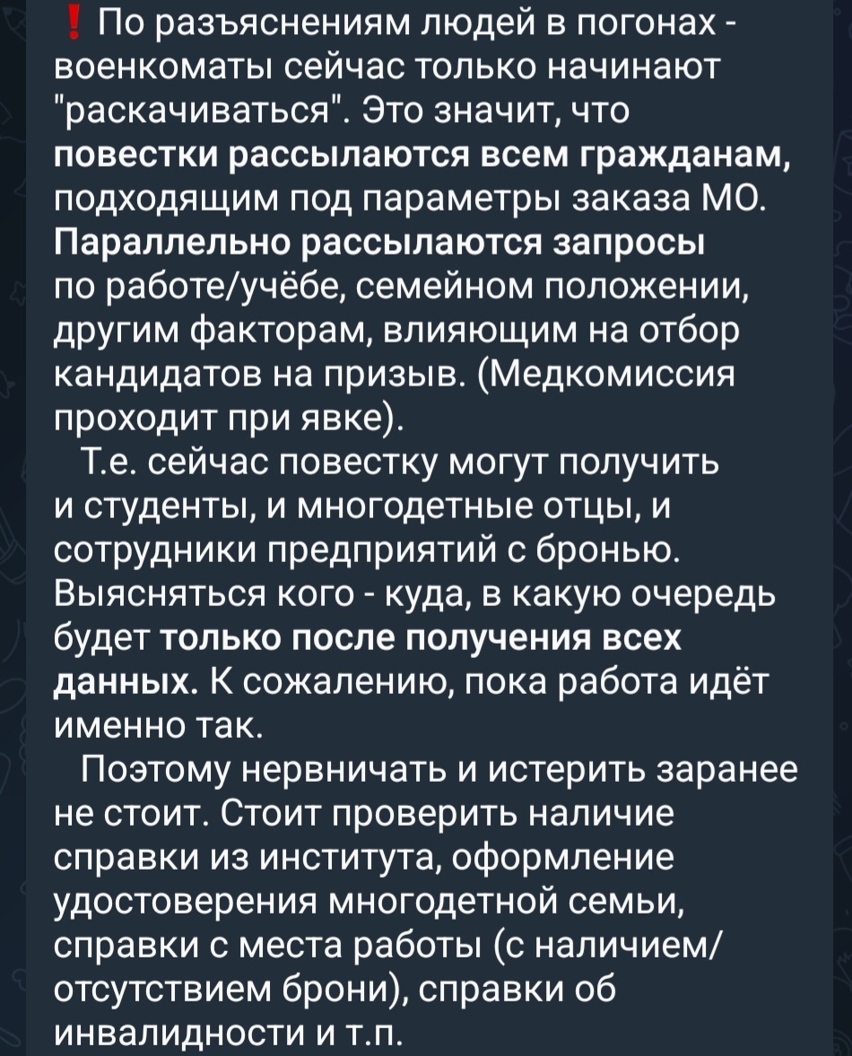 - Где-то получают повестки все подряд (а потом оказывается, что многие люди даже не подходят, многодетные отцы - так произошло в Бурятии),