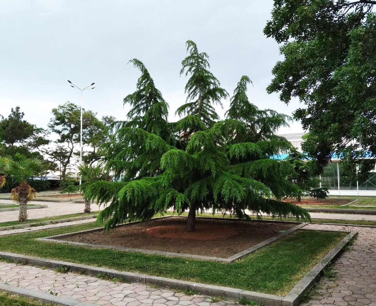 В парке растут разные пихты, сосны, кипарисы, кедры и лавровишня, ивы, березы и каштаны.
