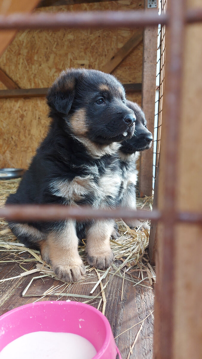 Друзья ,наверно многие из Вас не знают ,но у нас есть 3 девочки, 3 немочки, одна из них принесла нам очередной помет ,и в этот раз мы не удержались. 23 августа на свет появились Багира и Шархан,мы их называем "Баги" и " Шах", брат и сестра ,с разницей в 20 минут ,их было двое ,и мы просто не могли разлучить их ,родились они крупные, активные , мальчик родился лохматым, о таком я только мечтала, с характером,но все равно очень много было мыслей ,ещё 2 собаки ,мы не потянем ,за всеми не уследить, все мысли ушли на второй план ,и было решено : " Оставляем!" Теперь у нас 4 девчонки и один мальчишка.