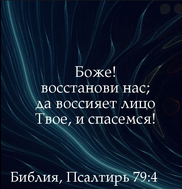 «Господи, Боже сил! Доколе будешь гневен к молитвам народа Твоего? Ты напитал их хлебом слезным, и напоил их слезами, в большой мере. Положил нас в пререкание соседям нашим, и враги наши издеваются над нами. Боже сил! Восстанови нас; да воссияет лицо Твое, и спасемся!» (ст. 5-8).