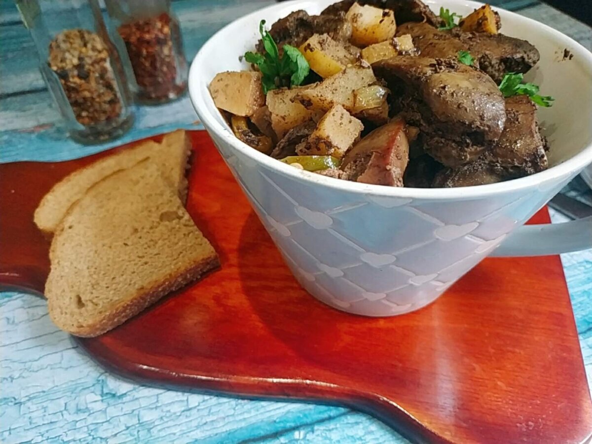 У этого блюда одни достоинства - куриная печень получается сочная, лёгкая, питательная, готовится быстро, без заморочек, блюдо богато овощами, ну и плюс довольно бюджетное. Дело за малым - убедить во всех этих достоинствах домочадцев 🤭 Нам потребуется Приготовление Куриную печень режем на две-три части. Обжариваем партиями в сковороде по три-четыре минуты. Партиями - это значит не выкладываем всю печень на сковороду разом, чтобы печень у нас именно жарилась, а не тушилась. Обжаренную печень выкладываем на тарелку.Подливаем ещё ложечку масла в сковороду где обжаривалась печень и обжариваем мелко порезанный сладкий перец и лук кубиками. Жарим пару минут, помешивая. Возвращаем печень в сковороду, перемешиваем, солим, перчим, жарим ещё пару минут. Яблоко очищаем от кожуры, режем кубиком. Добавляем в сковороду к печени и овощам. Жарим ещё две-три минуты. Вливаем в сковороду три-четыре ложки воды, накрываем сковороду крышкой и жарим печень на огне чуть выше среднего ещё пару минут. За это