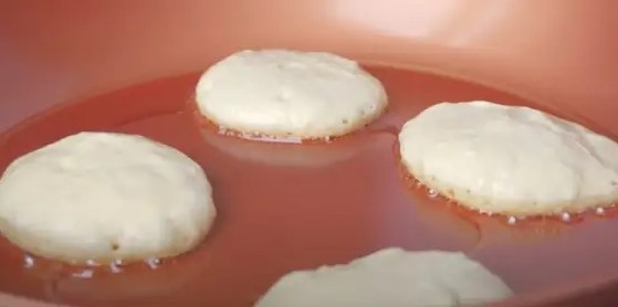 - Выкладываем столовой ложкой на сковороду в небольшое количество растительного масла, обжариваем на небольшом огне до румяности с двух сторон.