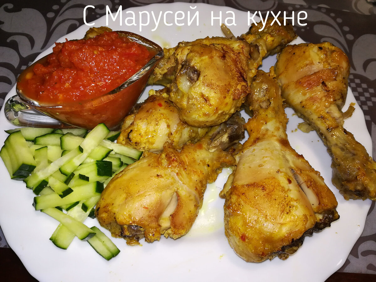 Куриные ножки с карри и йогуртом, запечённые в духовке.