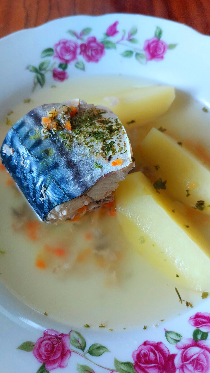 Я довольно часто пишу про отварную рыбу. В частности - про отварную скумбрию. На мой взгляд, это очень удачный вариант. Плюсы - * Вкусная. Для меня это самый важный пункт. * Полезная. Морская, дикая рыба, с комплексом всякого нужного и полезного. Повторяться не буду, инфы про это полно в сети. * Доступная. Купить можно везде. * Демократичная цена. Это важный пункт, для меня во всяком случае. Просто готовить, что тоже важно. А для тех, кто не ест мясо, или на диете по медпоказаниям - отварная скумбрия это то, что нужно. Итак. Скумбрию разморозить, почистить, промыть. Нарезать на довольно крупные куски. Собрать набор специй и приправ, так называемый букет гарни. Что я добавляю - целую подпеченную луковицу и половину моркови. Лавровый лист и перец горошком. Стебли укропа, петрушки, кинзы, что есть, можно стебелек сельдерея, все это связываю в букет, с помощью обычной белой нитки. Чем удобно - не нужно процеживать бульон, просто вынуть и выкинуть, не расползается. Можно добавить зуб