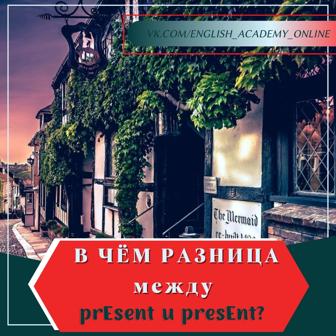 В английском языке есть слова, которые пишутся одинаково, но читаются по разному. Сегодня посмотрим на слово PRESENT . В зависимости от того, куда ставится ударение, меняется и смысл слова. Давайте разберёмся и запомним, в каком случае, что будет значить сегодняшнее слово. 🛑 PReSENT Произношение и перевод: [ˈprezənt] / [прэ́зэнт] – подарок Значение слова: то, что мы дарим кому-то по особому поводу или в качестве благодарности Примеры: •New Year is time for presents. - Новый год - это время подарков. •I need to find something special for Kate, a unique present. - Мне нужно найти что-то особое для Кейт, уникальный подарок. 🛑PRESeNT Произношение и перевод: [prɪˈzent] / [призэ́нт] – дарить Значение слова: давать кому-то что-то особенно формально в рамках какой-то церемонии Употребление: present somebody with something - подарить кому-то что-то present something to somebody - дарить что-то кому-то Примеры: •He was presented with a golden medal. - Ему пода
