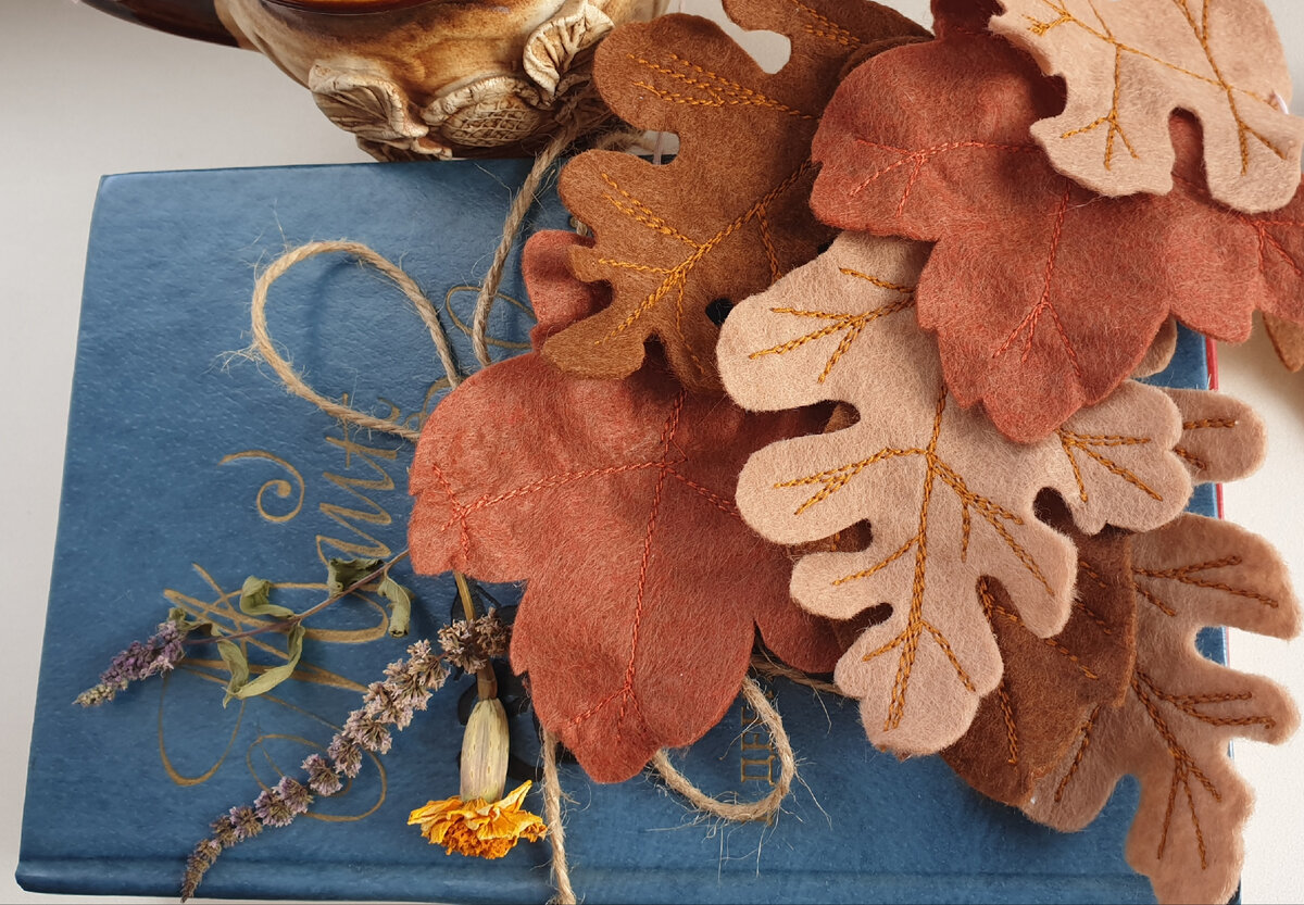 Для того, чтобы сделать осеннюю листву, нашими прекрасными ручками, нам потребуется: фетр, нитки нужной расцветки, ножницы, игла, схема рисунка листьев, швейная машина или умение делать красивый и ровный ручной шов. Берём фетр, на нём схему листьев фиксируем булавками. Вырезаем листья из фетра по контуру. Рисунок для строчки берём из схемы или используем свою фантазию. строчку прокладываем 2-3 раза, чтобы рисунок жилок был сочнее. Листья получатся словно настоящие. Они являются идеальным украшением для дома в осеннем стиле или для милого элемента на платье девочки. P.S. У меня есть свой ютьюб канал. Заходи посмотреть ♡