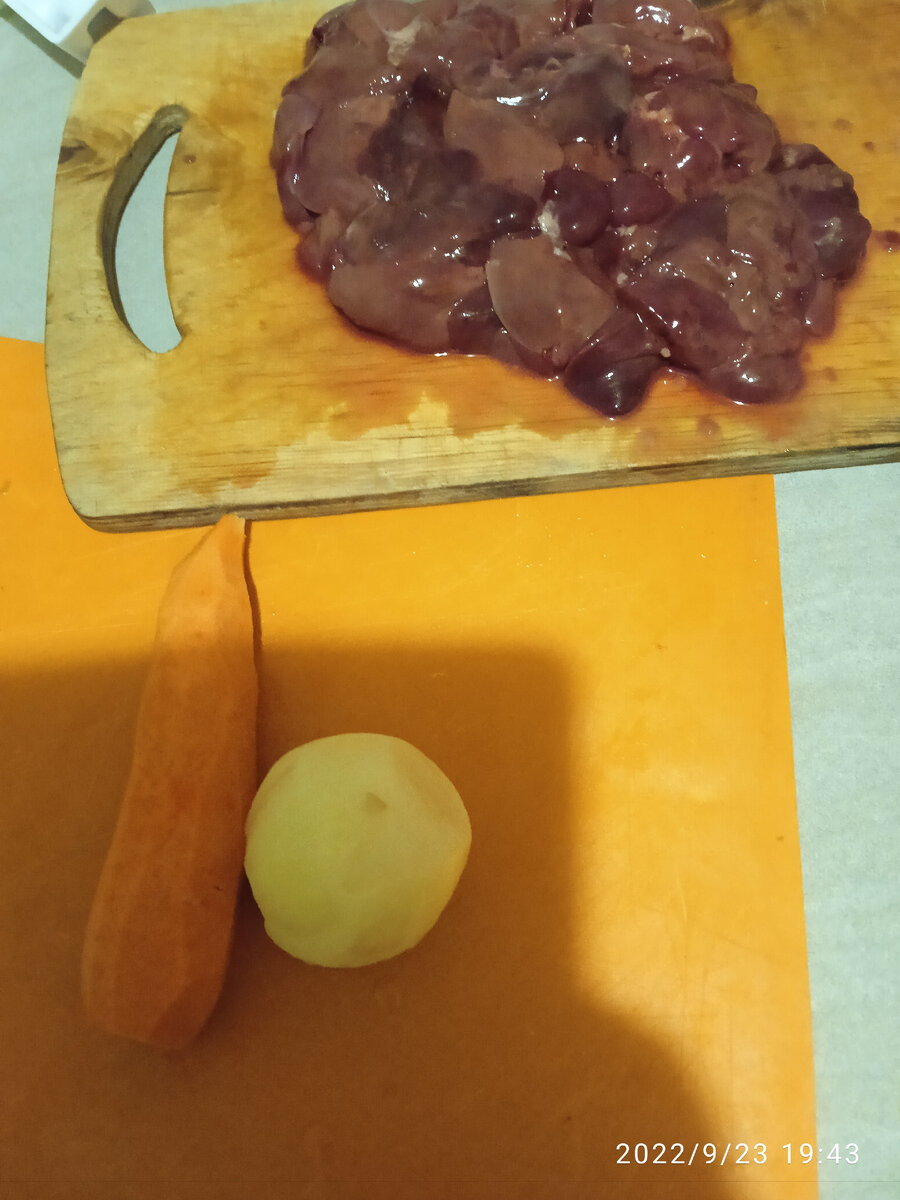 Опять же на просторах интернета нашла рецепт печени с яблоками и решила приготовить. Для начала нужно натереть морковь и нарезать лук. И потом обжарить их на сковороде и немного потушить. Потом нарезанную печень добавить к овощам, добавить соль, специи и тушить 10 мин. Далее натереть яблоко очищенное от кожуры и добавить в овощи и печень и тушить ещё 15 мин. И вот такая вкуснота получилась, попробуйте, очень советую.