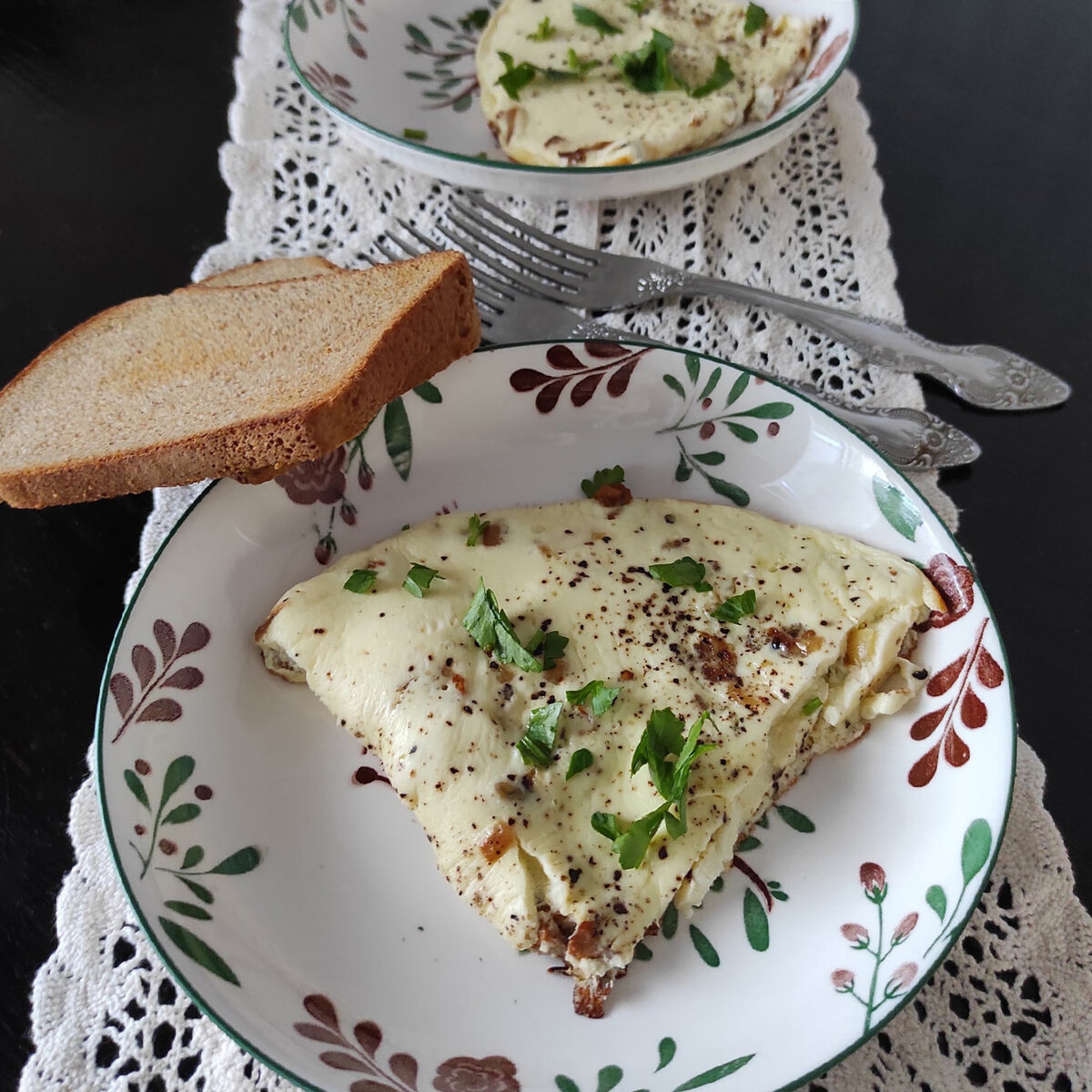 Сезонный завтрак — омлет с лисичками. Хотя, если вы заготовили лисички на зиму, например, заморозили, то приготовить его можно, когда захотите. Ну а сейчас самое время попробовать добавить их в омлет на сметане. Омлет — он тоже бывает разный. В духовке, на сковороде, без молока, с молоком, или, например, как сегодня на сметане. Я люблю омлет на сметане, он получается очень нежным, можно даже сказать, что с кремовой текстурой. В омлет на сметане можно также добавлять любые наполнители, а не только грибы. Но поскольку я вчера нашла в парке немножко лисичек, то они туда и отправились. Лисички я не только чищу, но промываю проточной водой, так как я их практически выкопала из под листьев. С пластинчатых грибов вода стекает хорошо, на дальнейшей жарке мытье никак не скажется. Итак, лук нарезаем мелко, лисички можно чуть крупнее. Разогреваем на сковороде немного растительного масла без запаха на среднем огне и сначала отправляем лук. Когда он станет прозрачным и слегка карамелизируется, доб