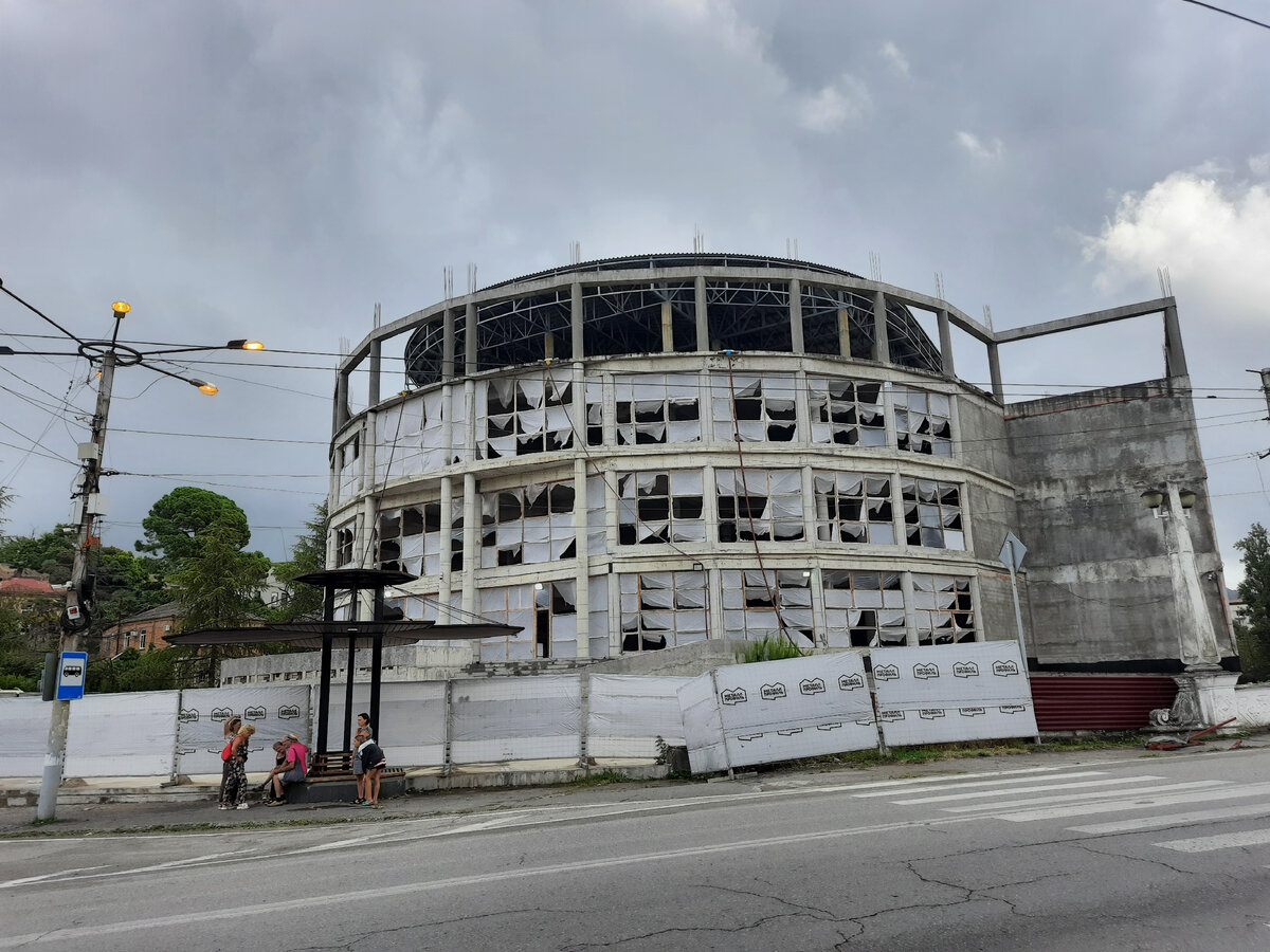 На третий день с утра мы с мужем собрались посмотреть пляж Мокко. Это благоустроенный песочный пляж в ближайшем пригороде Сухума. До него можно доехать на троллейбусе за 5 руб., на автобусе за 10 руб. или на маршрутке за 30 руб. Но мы решили прогуляться до него пешком. Всего-то 3 км. Мы в Ейске ежедневно до нашего пляжа ходим по 2,5 км. Но нашим планам помешал внезапно начавшийся тропический ливень. Хорошо, что мы от дома еще ушли недалеко. Переждали ливень на остановке. Когда дождь немного утих, мы решили вернуться домой, так как никакого просвета на небе не увидели. Но вскоре выглянуло солнце и погода наладилась. Заглянула в наш общий чат, а наши девушки собрались на прогулку в центр. Муж, как всегда, отказался идти с нами, поэтому мы женским коллективом из 7 человек отправились гулять по Сухуму. От нашего дома до набережной всего 1,5 км. По дороге я разглядывала дома и разные здания. Попадались и совсем разрушенные, оставшиеся еще с советских времен. Но чем ближе к центру, тем бо