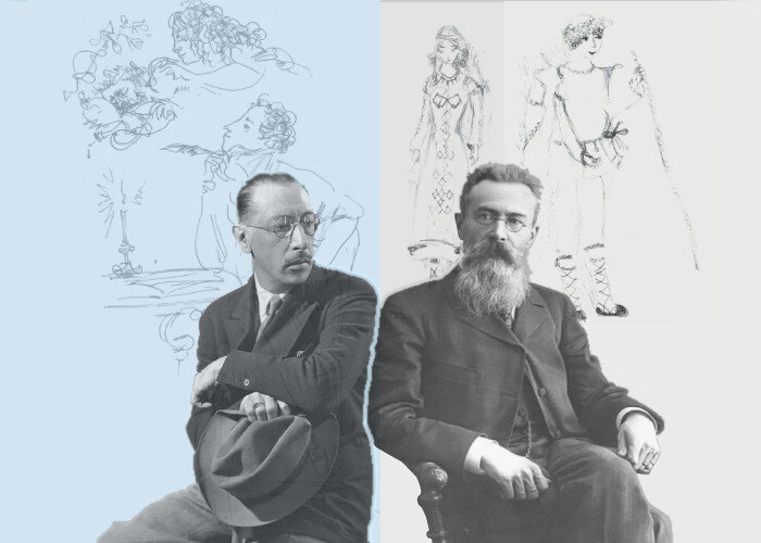Старая пожелтевшая фотография начала прошлого века. На ней пожилой красавец с чеканным профилем, огромным выпуклым лбом и окладистой седой бородой. Рядом с ним молодой мужчина неприметной наружности испуганно смотрит в объектив. У него набриолиненные по моде волосы, большой нос, длинное худощавое лицо и смешные усики. Это Игорь Стравинский и Николай Андреевич Римский-Корсаков. Великовозрастный ученик и великий учитель. Стравинский попал к главе петербургской композиторской школы по протекции своего университетского товарища, тот оказался одним из сыновей мэтра. До сих пор не ясно, почему настойчивый борец с дилетанщиной, профессор столичной консерватории, стоявший у её истоков, отсоветовал поступать в альма-матер. Не увидел в Стравинском особых способностей или наоборот, разочаровался в системе обучения, которая нивелирует талант самородка? Мастер научил его всему: уважать полифонию, грамотно использовать фольклор, энергию ритма и главное, понимать природу оркестра. Уроки продолжались