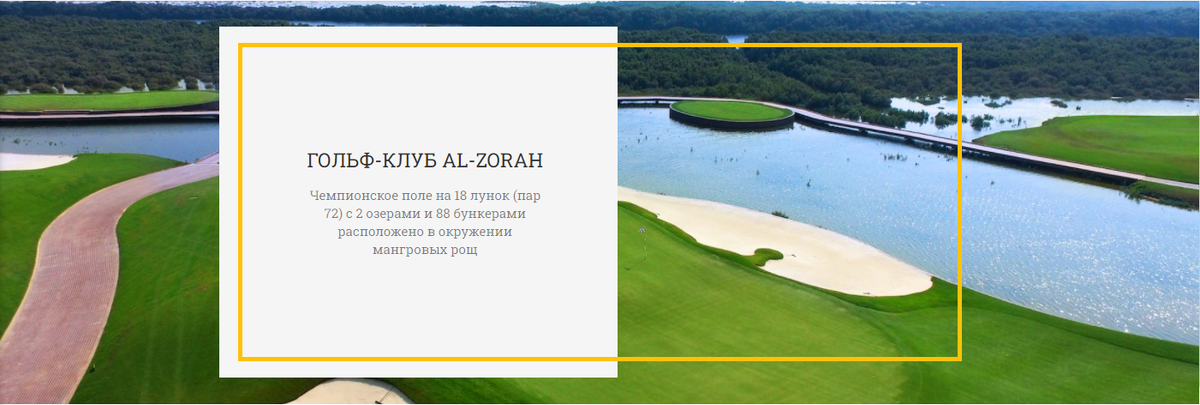 Гольф-клуб Al Zorah - это чемпионское поле на 18 лунок (пар 72) с 2 озерами и 88 бункерами, которое полностью соответствует мировым стандартам для проведения профессиональных соревнований самого высокого уровня. Гольф-поле расположено на фоне прекрасных природных ландшафтов в окружении более миллиона квадратных метров мангровых рощ. Гольф-поле строилось по проекту компании Nicklaus Design, принадлежащей легендарному американскому гольфисту Джеку Никлаусу, который за свою спортивную карьеру выиграл 18 крупных турниров. Проект был завершен в декабре 2015 года. Трава - платиновый паспал. Гольф-клуб также включает прекрасно ухоженное тренировочное поле с двумя ступенями - идеальное место для разминки перед или после раунда, или для точной настройки удара. Тренировочное поле длиной более 350 метров может вместить до 50 игроков и идеально сочетается с мячами Callaway Range. Как добраться: Ближе всего к гольф-полям расположены отели: The Oberoi Beach Resort (11 км, около 8 мин. на машине) и