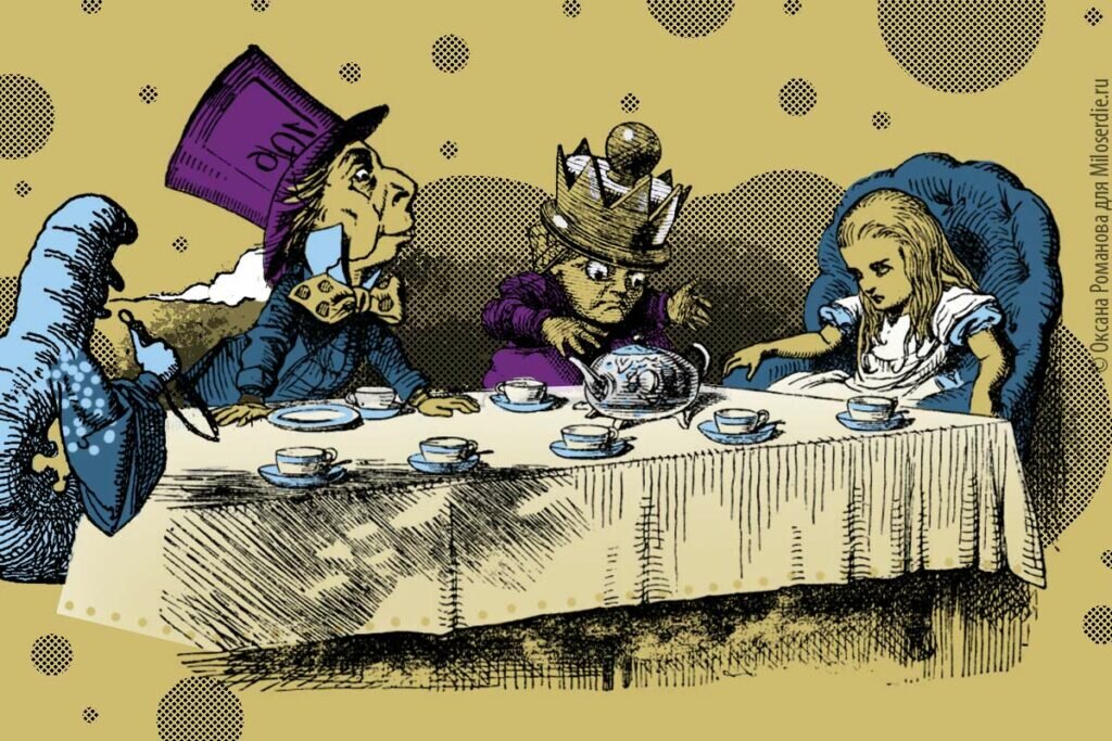 Коллажи Оксаны Романовой с использованием гравюр Джона Тенниела к книге «Алиса в Зазеркалье»