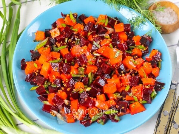 Зачастую самые простые блюда оказываются самыми вкусными и полезными. И этот салат как раз таким и является. Основные компоненты в салате - свекла и морковь. И их можно сварить (запечь) заранее и хранить в холодильнике до момента приготовления. Яркий жизнерадостный салатик можно готовить хоть каждый день и не бояться за лишние калории😉