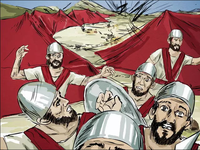 «Господь сделал то, что стану сирийскому послышался стук колесниц и ржание коней, шум войска большого. И сказали они друг другу: “Верно, нанял против нас царь израильский царей хеттских и египетских, чтобы пойти на нас”» (ст. 6).