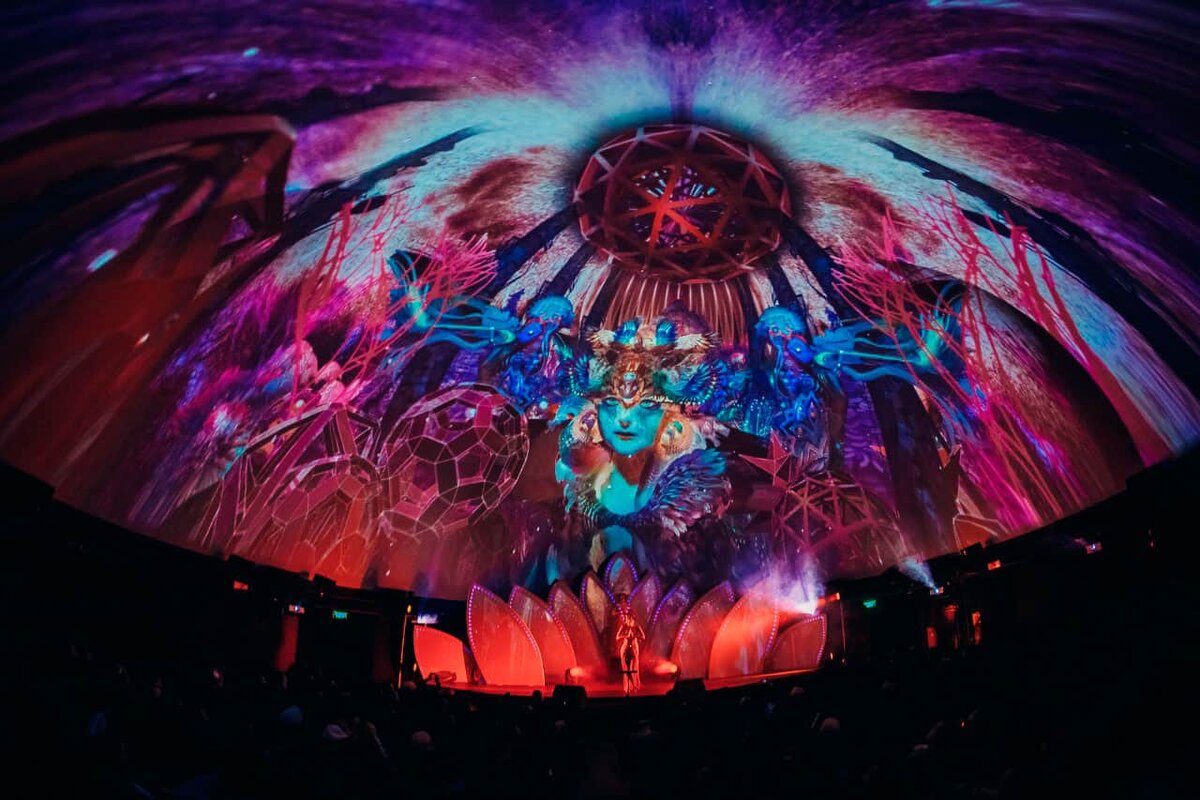Купольный кинотеатр в Москве в парке Горького. Гости сразу погружаются в уютную атмосферу с мягкими лежачими креслами и приглушенным светом. Площадка многофункциональна и работает как акт-локация для различных форматов мероприятий. Отличный эффект погружения во время трансляции космических пейзажей и других мультимедиа-презентаций. Такое времяпровождение прекрасно подойдет любителям атмосферных мероприятий.