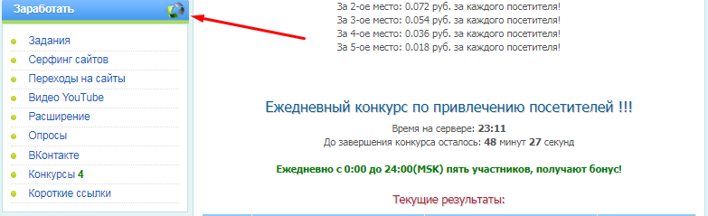 Осуществив вход в личный кабинет WMRFast com, можно приступать к заработку. Как уже было сказано выше, всего на сайте для этого предусмотрено 8 способов. Практически все они находятся в левом меню сайта, в разделе «Заработать».