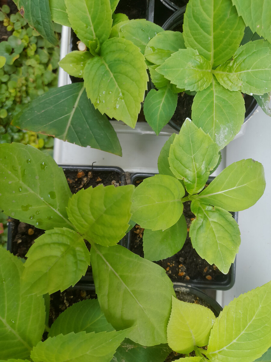 Летом начеренковала древовидных, дуболистных и крупнолистных гортензий. Древовидные на фото не попали, дуболистные погибли, пока я отдыхала в Кисловодске, а крупнолистные укоренились все, 100%. Теперь моя задача сохранить их до весны. Черенковала в июне, сейчас они активно растут, но впереди зима и мне нужно, чтобы стебли как можно быстрей одревеснели. Года три назад я упустила этот момент из виду и потеряла все укорененные за сезон черенки. С тех пор внимательно слежу за стеблями. И если в сентябре они все еще зеленые, даже без намека на одревеснение, применяю к ним карательные меры: В прошлом году удалось обойтись без потерь. После всех этих мероприятий держала укорененные гортензии вот в таких маленьких горшках до+5. Как только ночная температура стала опускаться к нулю, закопала их в большие кашпо, где летом росли колеусы, и присыпала скошенной травой. Всю зиму гортензии были на улице. В марте занесла на веранду, стала потихоньку досвечивать и в мае увезла на дачу кусты по 0,5 м в