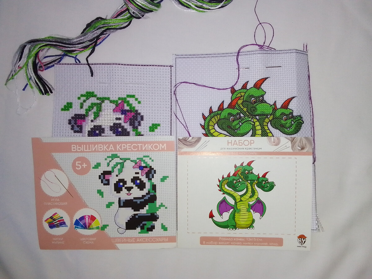 Всем привет, читатели, подписчики и просто проходившие мимо. Желаю - здоровья, успехов и приятных минут от крестикового релакса. И в сегодняшней статье я хочу затронуть тему про вышивку с нанесенным на канве рисунком. К чему я это, спросите вы? Да столкнулся с такой(точнее с двумя) чтобы скоротать время полета в самолете. Оба они были мимишные и на одной была панда, на другой дракон. Вы их видели в одной из моих статей. Кто не видел, делаю фото. К вышивке на которой панда, вначале вопросов не возникло и картинка (типа инструкция) и напечатанная схема на канве, имели четкие очертания крестиков, правда игла была пластиковая, но смог. Вопрос возник после стирки.😡 Но вот со второй, где дракон, это было что-то с чем-то🤦🏼♂️🙆🏼♂️! 1 Изначально к этой мимишной вышивке, дали не обычную иглу, а цыганскую (причем очень тупую), которая точно к этому каунту не подходит! И чтобы повторно попадать в перекрестие канвы отшитого ряда крестиков, надо родиться снauпeрoм.😡 2 Далее, никак