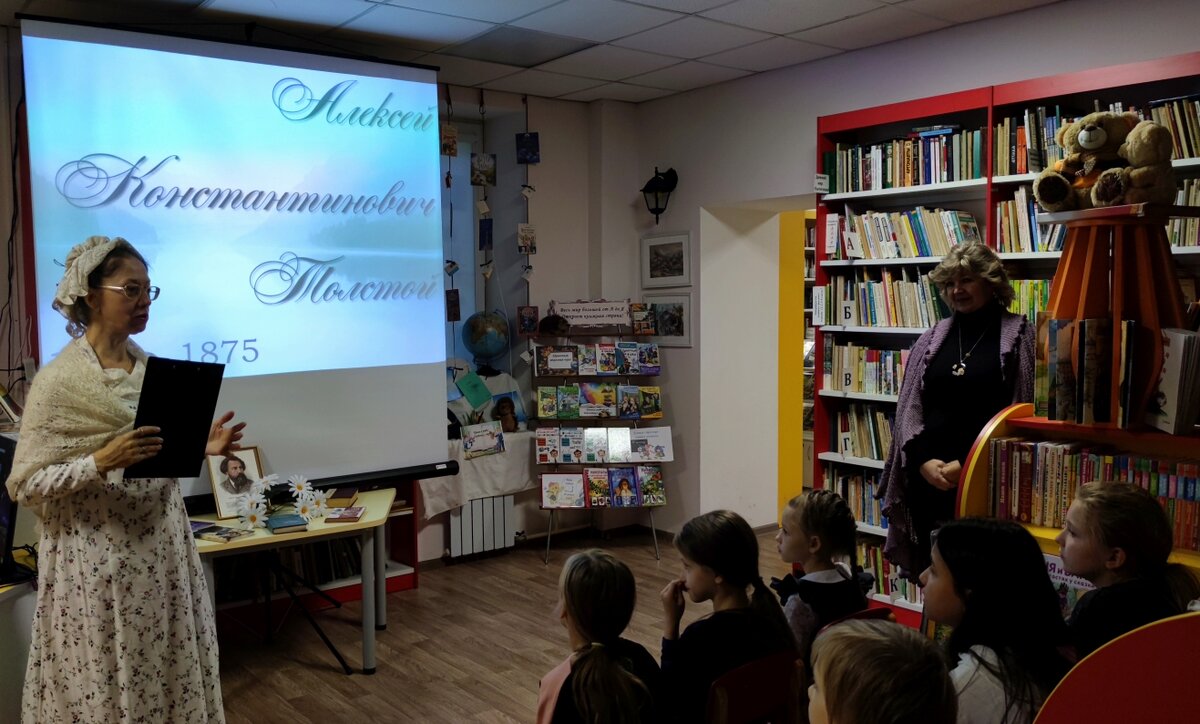 5 сентября исполнилось 205 лет со дня рождения поэта и писателя Алексея Константиновича Толстого. Этому событию была посвящена литературная гостиная,которая состоялась в Детско-юношеской библиотеке 10 сентября. Участники познакомились с биографией Алексея Константиновича,совершили виртуальное путешествие в музей-усадьбу Красный Рог, где прошли детские годы писателя. В роли экскурсовода выступила сотрудник библиотеки Елена Лисицына. Заинтересовал посетителей рассказ о том, что дядей мальчика является Антоний Погорельский. Специально для своего племянника он написал сказку «Чёрная курица, или Подземные жители», где прообразом главного героя стал юный Алёша Толстой. Документальный фильм познакомил посетителей с творческим наследием поэта. Прозвучали романсы на стихи автора «Колокольчики мои» (исп. С.Лемешев, муз. П.Булахов), «Средь шумного бала»(муз. П.Чайковский), «Благословляю небеса». Встреча дала возможность познакомится с творчеством человека яркого дарования и редкого благородства