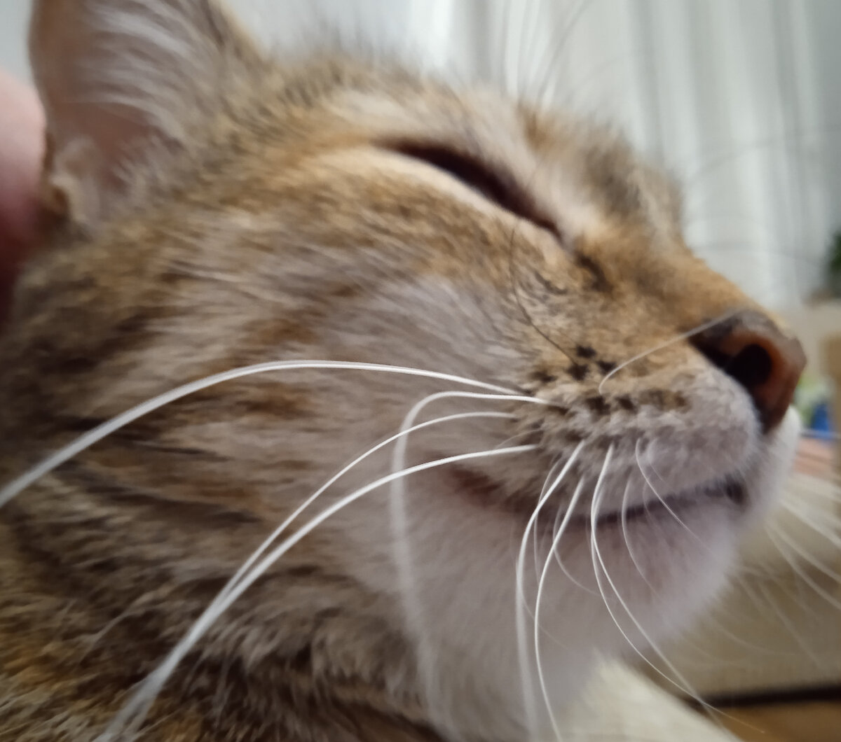 Красавица - на это слово наша кошка реагирует лучше, чем на собственное имя. И нельзя сказать, что мы с ней не согласны, т.к. сами говорим ей об этом каждый день. Даже если окрас у неё самый обычный (но иногда мы называем её "шанхайский барс", а иногда "мексиканский тушкан"), а глаз один, зато очень красивый и зеленый. Когда восемь лет назад соседка снизу принесла в подъезд кошку, которая собралась рожать в февральскую метель прямо на улице, я и не думала, что это сокровище достанется нам. Худая, с реденькой шерстью непонятного окраса и одним глазом. Тем временем кошка родила семерых котят в коробке напротив лифта, и желающих забрать домой роженицу с её многочисленным семейством не наблюдалось. Никаких домашних животных заводить я тогда не планировала, но просто ходить мимо не смогла и начала кормить молодую мамашу. Котята подросли и почти всех к счастью разобрали, а кошка стала каждый день приходить к нашей квартире и ждать нас. Сначала появлялась днем, чтобы поесть и подремать на ков