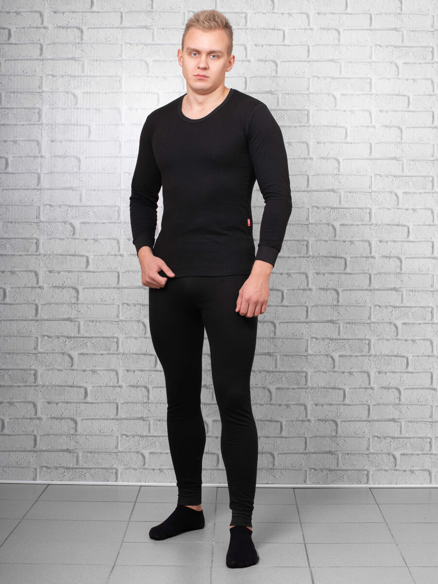 На выбор есть комплекты черного и серого цветов (классические колеры для thermo underwear). Состав материала: 70% хлопок, 28% полиэстер, 2% спандекс. Ткань очень легкая, «дышащая», идеально прилегает к телу. Качественные швы исключают трение о кожу и ее покраснение, а также увеличивают продолжительность носки. Это превосходный вариант для активного отдыха и занятий спортом (бегом, лыжами, хоккеем, коньками и др) в осенне-зимний период. Диапазон температур воздуха: от -25 до +10 градусов.