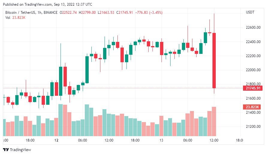 Хьюстон, у нас проблемы: инфляция в США за август оказалась на уровне 8,3% при ожидаемом прогнозе 8,1% 😬 BTC реагирует падением на $1 000, потому что такое снижение инфляции можно расценить как незначительное, что будет аргументом для более жесткой монетарной политики ФРС. Индекс доллара напротив реагирует ростом и уже вернулся на 109. Такая реакция может быть предварительной и пока рано кричать караул и ждать новое дно, но условия вчерашнего плана по росту на $25k очевидно не выполнены 😕