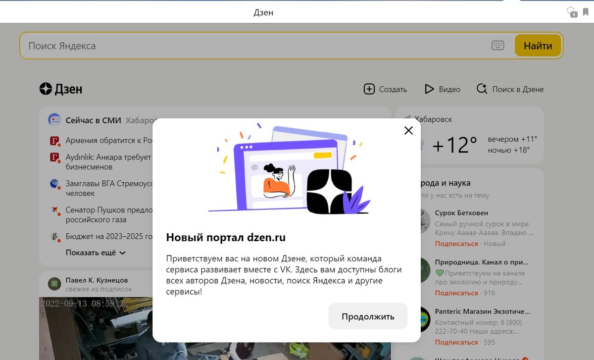 Опять? Изменения бесконечны и без этого никуда. По информации компании Яндекс сделка по продаже Дзена и Новостей закрыта, и теперь ими владеет VK. Постепенно мы будем замечать связанные с этим изменения в сервисах Яндекса. Delivery Club же переедет на единую площадку с Яндекс Едой. Изменение в мобильном приложении Яндекса смотрите в предыдущем ролике. После запуска десктопной версии Яндекс.Браузера, на новой странице, обратите внимание иконку самого Яндекса – снизу появилась стрелка на переход к Дзену: Жму на иконку Яндекса и – перехожу на dzen.ru – здесь доступна поисковая строка Яндекса, новости, настройки и подписки: Продолжаем. Привычный список каналов появляются после прокрутки страницы вниз: Чтобы найти главную страницу самого Яндекса в адресной строке начинаю набирать первые буквы: Главная страница, как я писала ранее в посту 3 недели назад, стала почти кристально чистой по адресу ya.ru – с основной функцией поиска: Часть меня страдает от очередного изменения, потому что спокой