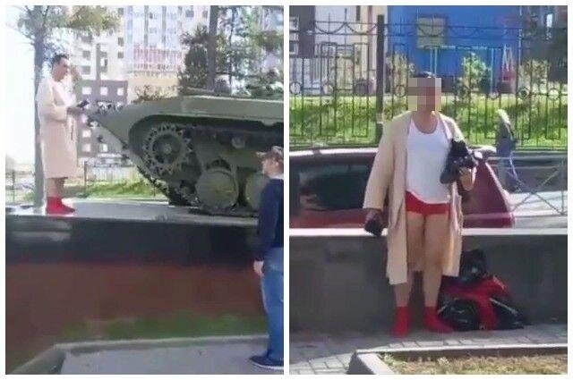 Мужчина в красных трусах устроил фотосессию на военном памятнике в Новосибирске