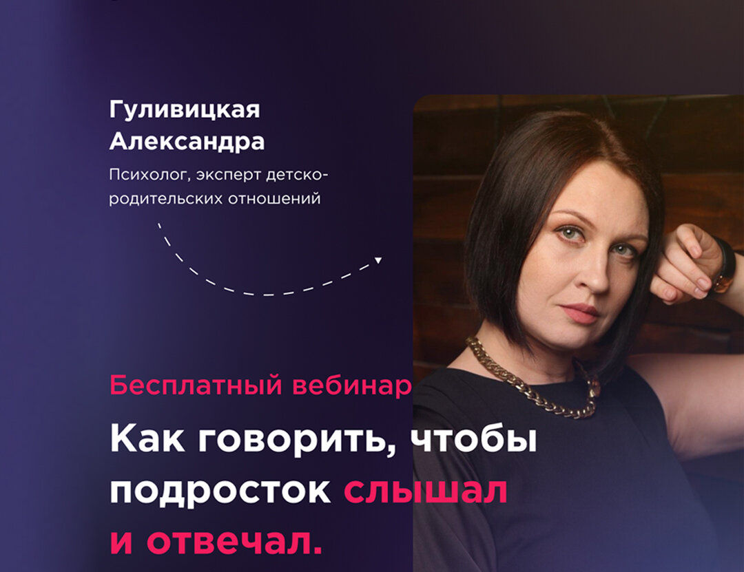 ОНЛАЙН ГИМНАЗИЯ № 1 совместно с психологом, экспертом детско-родительских отношений Александрой Гуливицкой подготовили серию онлайн-вебинаров, где психолог расскажет вам, как найти точки контакта с вашим ребенком и выстроить с ним крепкие и дружеские отношения.