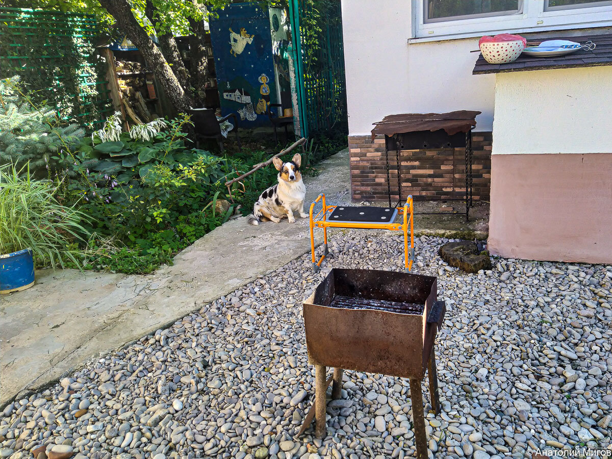 Пока крымская погода позволяет, решили провести вечер с шашлыком. Сходил на рынок за свиной шеей, разделал мясо, замариновал. Шашлык я готовлю консервативно, как научили ещё во времена СССР, с луком, реганом (он же базилик) и уксусом. Знаю, знаю, что при упоминании уксуса сейчас придут сюда рассерженные кулинары и скажут, что это ни в какие ворота, что уксус сушит мясо и вообще это смертный грех... Но я ведь никого не учу, готовлю для себя, и мне нравится. Мангалов у нас теперь два. Один новый, большой, гостевой. А у старого дно прогорело, но он для меня привычней и функциональнее. Так что я вырезал прямоугольник из железного листа и положил на дно, можно пользоваться. Тем более гостей нет, нам с Леной на двоих четырёх шампуров хватит за глаза. Тильда, как настоящая охранная собака, ходит кругами, следит, чтобы никто из кошек не смел на шашлык посягнуть. Даже огонь ей не страшен, вот какая ответственность. Ну и ещё собачка эмоционально переживает, чтобы я всё правильно сделал, чтобы