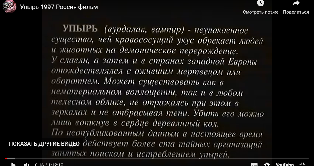 «Упырь» 1997г. нашествие вурдалаков на провинциальный российский городок...