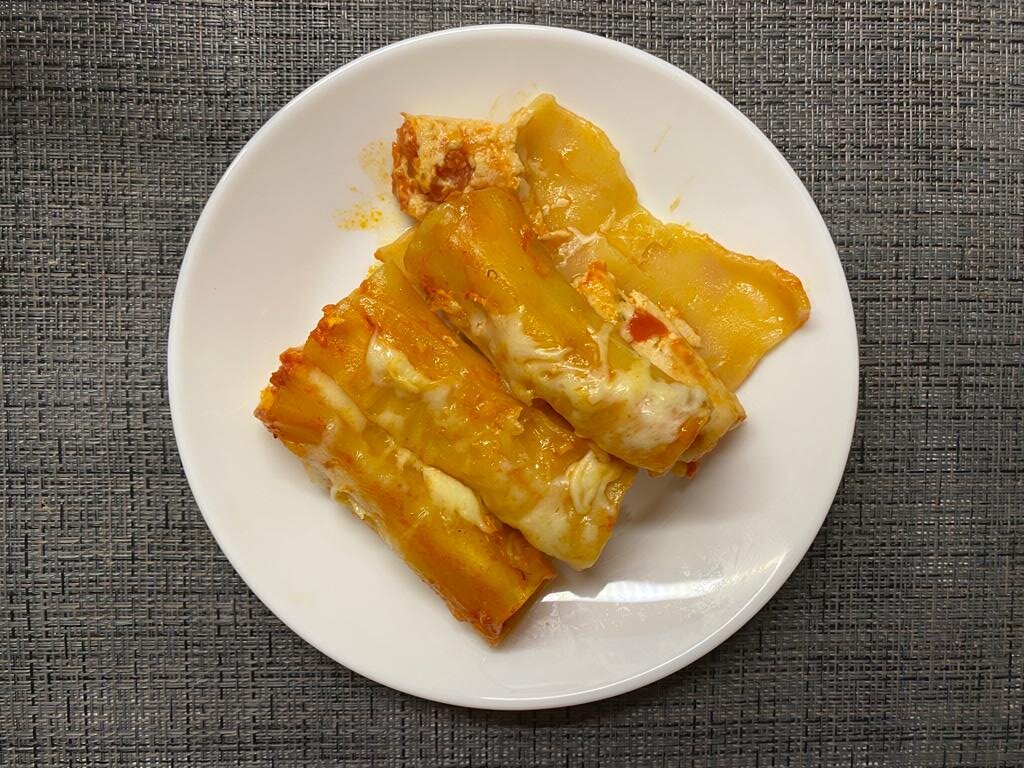 Каннеллони с курицей и сыром сулугуни в томатном соусе