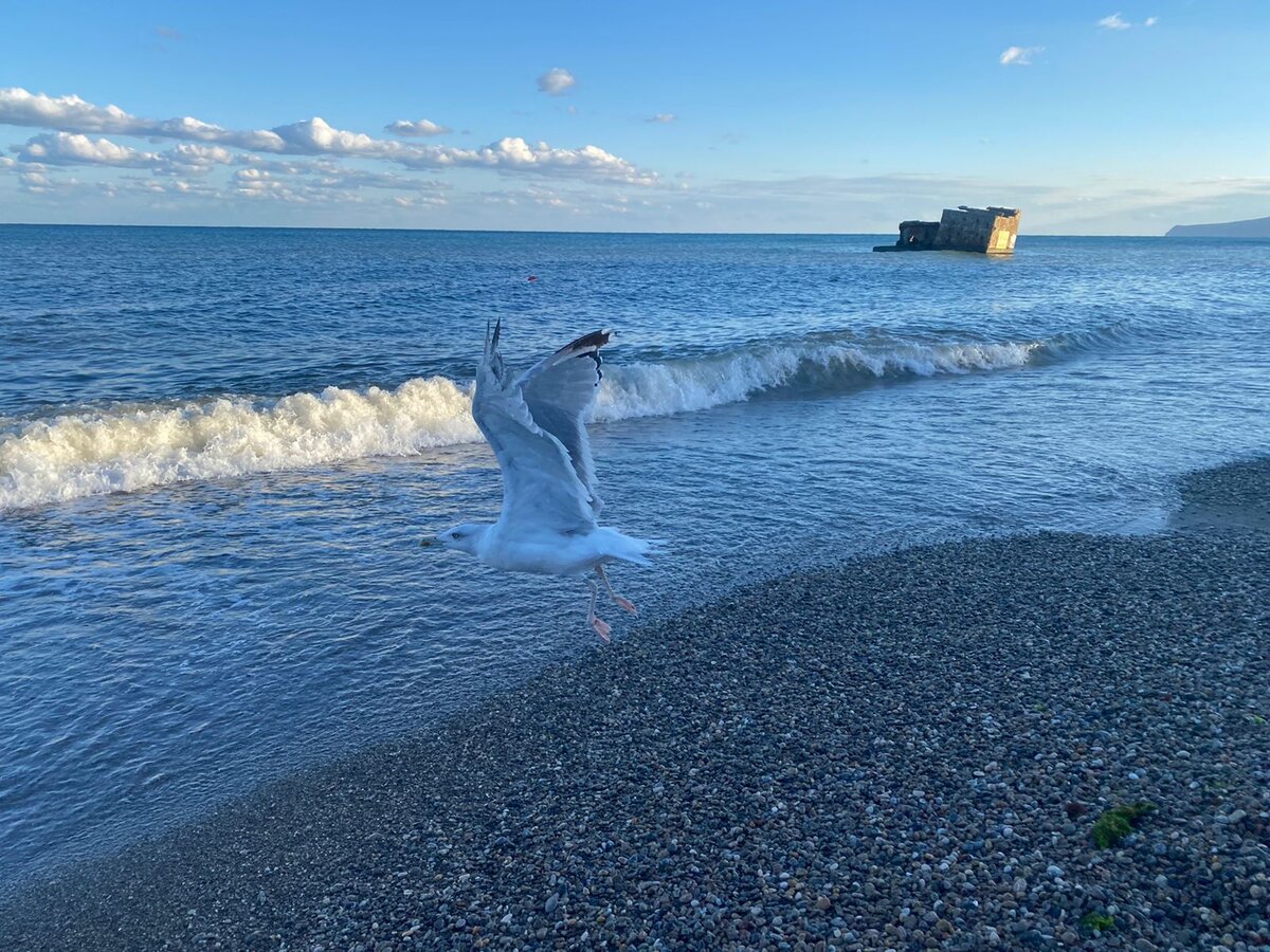 Конечно, все мы хотим, чтоб и красиво и мало людей и недорого. И если находим такое место, то или рассказываем знакомым/друзьям или пишем о нём обзор. Я - выбираю второе. Занесло меня в поселок Курортное, что недалеко от всеми известного Коктебеля и Феодосии. Сразу упомяну, что поездка была в начале сентября, поэтому и число людей конечно порадовало, в первый день мы вообще на пляже с сестрой были одни, потом распогодилось и конечно уже не так пусто было. Где остановиться в п. Курортное. Рекомендую заранее не бронировать, а приезжать и уже по факту искать, но разумеется и заранее можете проверить этот район, может что-то и найдете. Мы снимали 2 отдельные комнаты с отд. ванной и кухней (обе по 2 человека) по 1400 за ночь, но можно было найти наверное и дешевле, если походить подольше и поторговаться. Локационо находится максимально близко к самому лучшему в поселке пляжу с одноименным названием Курортная улица. Вот вдоль нее и ищите. Вот этот пляж: А чайки показывают насколько мало там