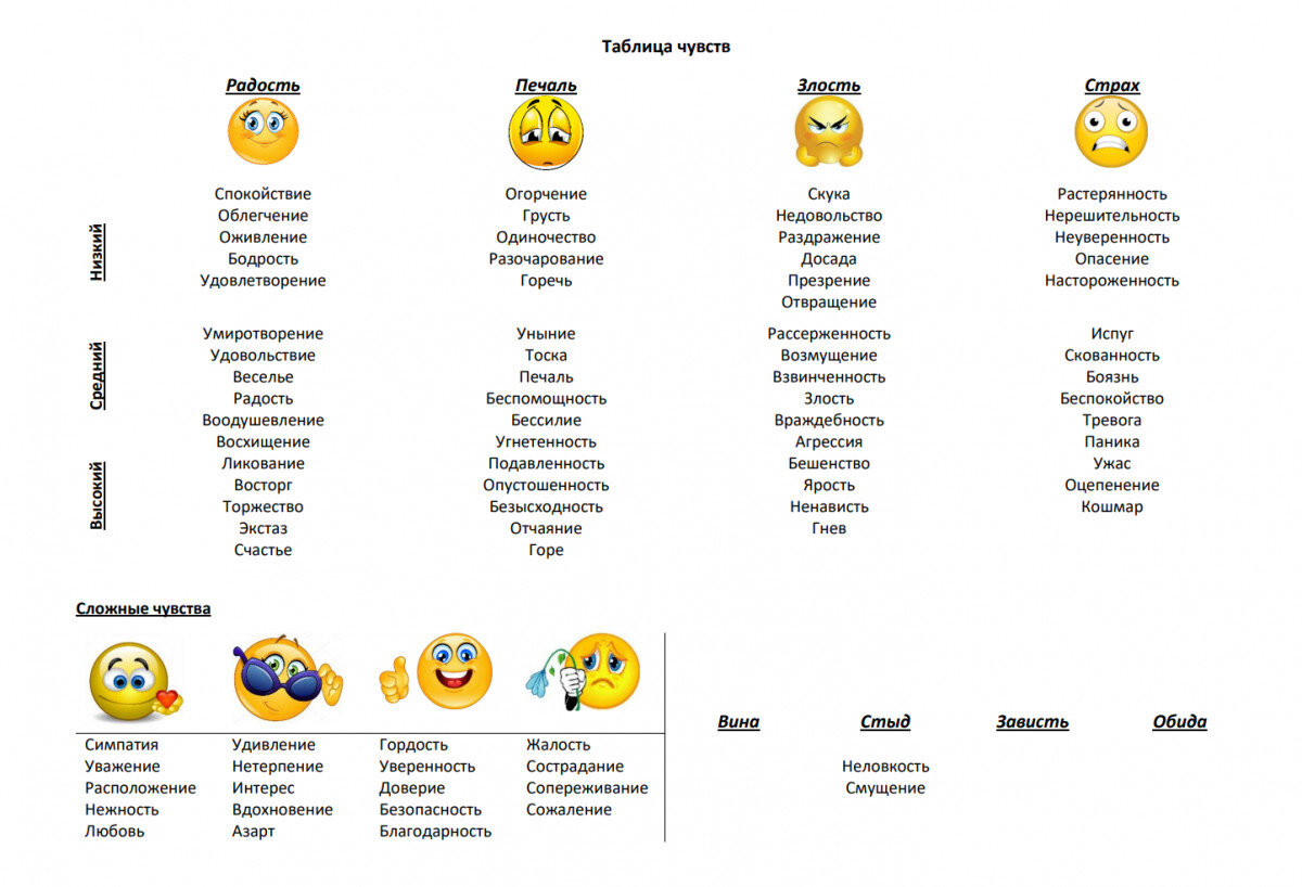 Часто слышу вопрос от новых клиентов о том, как проживать свои чувства. В связи с этим, я подготовила памятку с ответом на этот вопрос. Итак, для того чтобы экологично проживать свои чувства, нам нужно: 1. Заметить чувство. Для этого мы прислушиваемся к себе, наблюдаем - где в теле самое яркое ощущение. 2. Определить чувство. Подумаем, то яркое ощущение которое мы заметили, на что оно похоже? Если трудно определить чувство, смотрим на картинку ниже, там представлен список основных чувств, он поможет сориентироваться. 3. Связать чувство с тем событием, которое его вызвало. Т.е. нам нужно определить, к какому событию относится это чувство. Для этого подумаем о том, что происходило до этого: может был разговор с кем-то и в процессе разговора что-то произошло, например, нарушили наши границы, а мы это сразу не заметили. Или мы увидели что-то, что напомнило о какой-то текущей проблеме и т.д. 4. Поговорить с кем-то о сложившейся ситуации и своих чувствах в связи с ней. Т.е. либо поделиться,