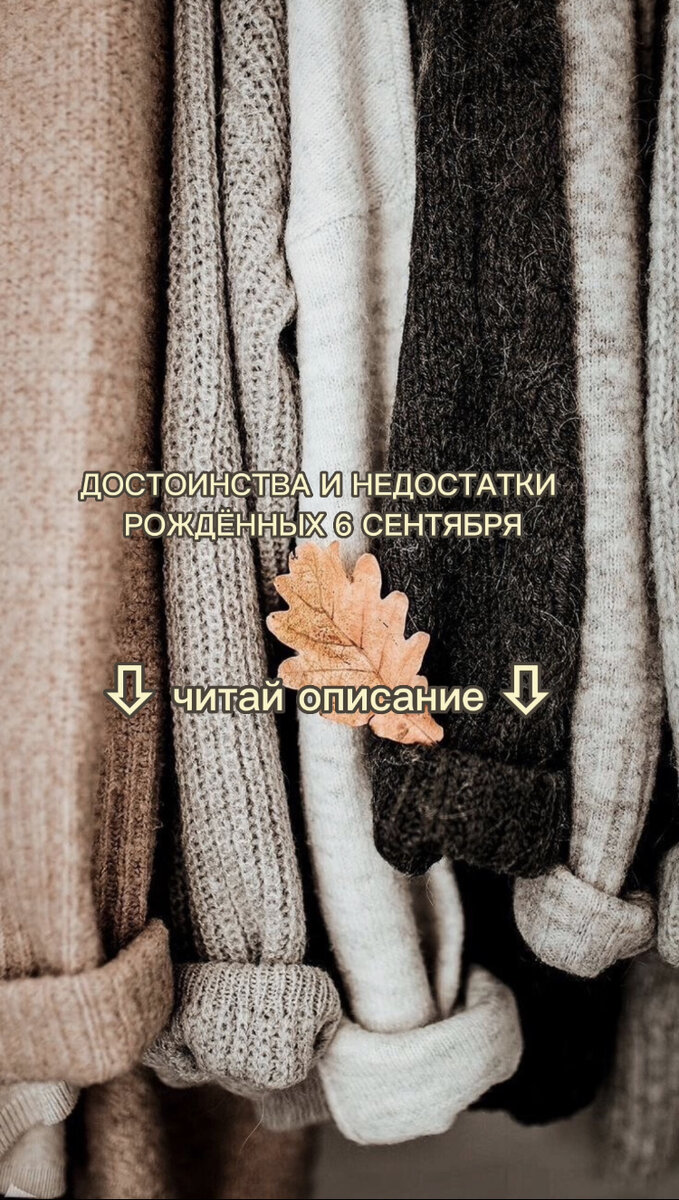 ДОСТОИНСТВА И НЕДОСТАТКИ РОЖДЁННЫХ 6 СЕНТЯБРЯ ⠀ Все хорошо хотя бы потому, что иначе и быть не может. ⠀ Вам не помешало бы научиться беспристрастно взирать на мир. Вы обладаете завидной физической сопротивляемостью, вы устойчивы к болезням, и вам не приходится работать на одни лишь лекарства. Вы знаете ответы на многие вопросы, и обычно ваших знаний вам достаточно. Ваш дом – ваша крепость. Поддерживая связь со старыми друзьями, вы испытываете нечто вроде ностальгии, но это, согласитесь, не повод, чтобы пытаться повторно войти в одну и ту же воду. ⠀ * Подписывайся на @numerolog_veya чтобы узнать о достоинствах и недостатках рожденнных в другие числа