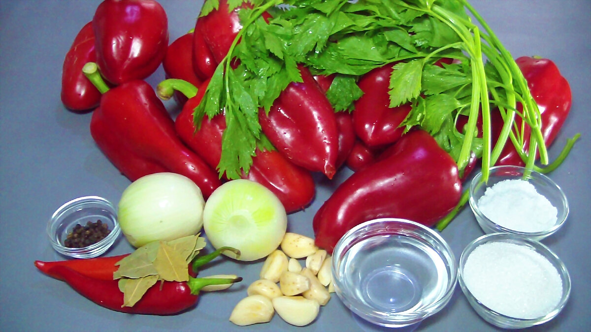 Если вы любите различные овощные заготовки, и хотите что-то новенькое, предлагаю вам попробовать рецепт маринованных перцев. Такая закуска подойдет к любому застолью. Перец остается хрустящим и ароматным. Если вы заинтересовались рецептом, приглашаю к себе на кухню, где покажу и расскажу, как его приготовить. ВИДЕО РЕЦЕПТ: ПОШАГОВЫЙ РЕЦЕПТ С ФОТО: Я использую для такой консервации красный перец. Он более ярко смотрится в готовом виде. Но это мое мнение, а вы можете готовить из любого. Очищаю перец от хвостика и семян. Нарезаю на произвольные, но не сильно мелкие кусочки. Лук Нарезаю кольцами. Так он сохранит форму и будет отлично смотреться в готовом блюде. Чеснок нарезаю произвольно. Складываю на дно банки сельдерей. Он придаст вкус перцу. А я его еще и люблю поесть. Поверх перца выкладываю лук. Черный перец горошком и лавровый лист. Добавляю чеснок. Выкладываю до половины банки перец. Стараюсь сложить перец как можно плотнее. Снова добавляю лук. Один острый перец. Его можно не добавл