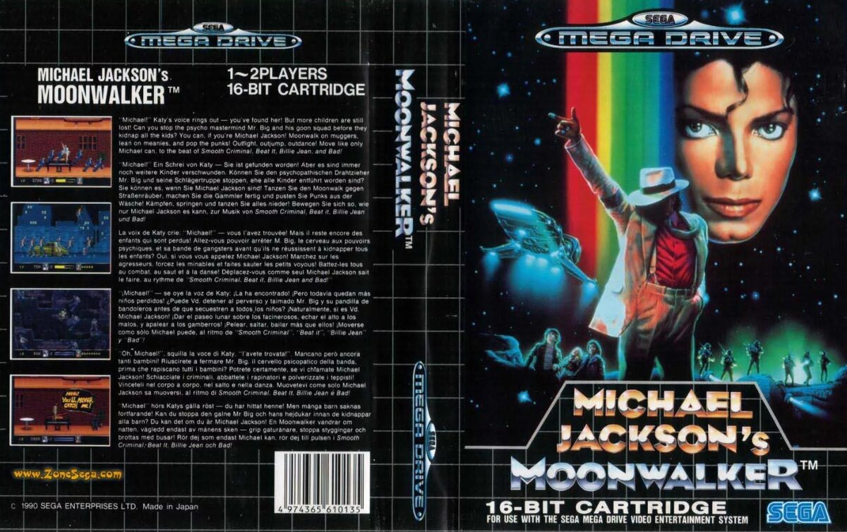 Michael Jackson’s Moonwalker «Лунная походка Майкла Джексона») — мультиплатформенная видеоигра, выпускавшаяся для домашних компьютеров и игровых платформ (Sega Mega Drive) с 1989 по 1990 годы. Основывается на кинофильме Moonwalker 1988 года. Майкла джексона – музыканта, который никогда не имел представления, что в девяностых годах стал персонажем хорошей аркадной игры под названием Michael Jackson’s Moonwalker. Также, для домашней видео консоли «Сега мега драйв 2» также появилась своя версия игры. Она понравилась как игрокам, так и обозревателям игровой прессы.На сегодняшний день, это платформа будет интересна всем поклонникам Джексона и любителям качественных «бродилок» с элементами боевиков. Незадолго до того дня, в не самый лучший день, таинственный и зловещий Мистер Биг похитил ни в чем не повинных детей. Герой Майкла Джексона узнаёт об этом ужасном поступке и поспешает на помощь несчастным. Вы можете помочь ему пройти не один десяток уровней и уничтожить врагов, используя танец