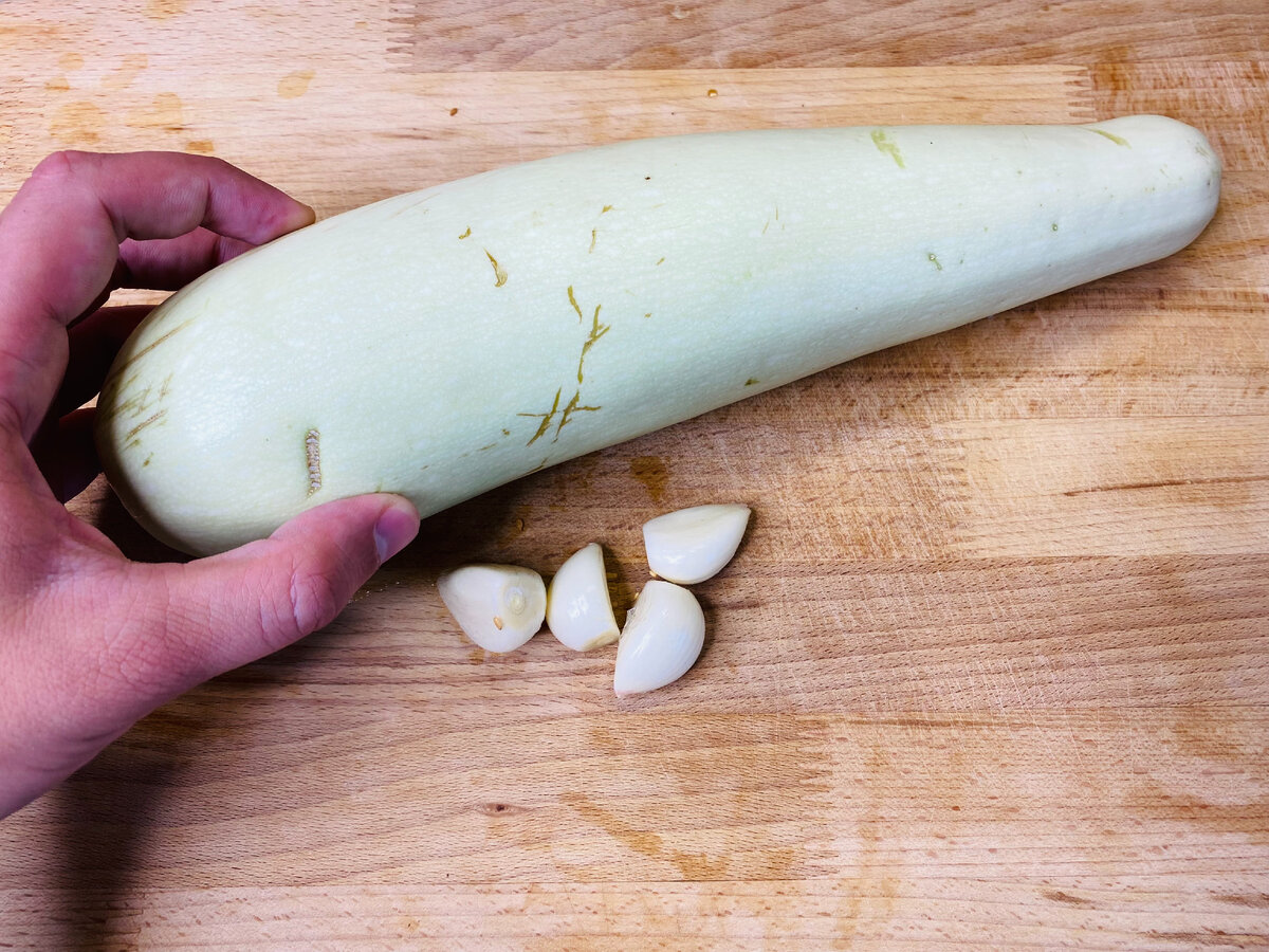 Не знаю как у вас, но у нас сезон овощей подходит к концу. Тем не менее это не мешает кабачкам лежать в углу и мазолить глаза. Самый простой и распространенный способ приготовления кабачков - нарезать их кружочками и пожарить на сковороде, но что если я скажу вам, что есть способ еще проще и быстрее? Чуть позже я обосную почему он проще, давайте приступим к готовке. В конце можете глянуть, какая красотища и вкуснотища получилась. Ленивый способ приготовить кабачки Я взял всего один, но крупный кабачок. Для начала вымоем его и сразу можем подготовить несколько зубчиков чеснока. Почему этот способ приготовления проще, чем те же колечки? Если нарезать этот кабачок на колечки, то жарить кабачок даже среднего размера придется за несколько заходов. Мы же изменим нарезку и все будет намного быстрее. Нарежем кабачок на бочонки. Теперь бочонки нарежем на дольки. Делается очень просто - берем бочонок, ставим вертикально и режем пополам, пополам, пополам и еще раз пополам и еще раз (запутался в