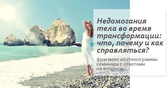 Многие из тех, кто начинает радикально менять свою жизнь, освобождаясь от прежних ограничений сознания, спустя какое-то время начинают ощущать симптомы трансформации. Это могут быть аллергические высыпания на коже, мышечные боли, сильный озноб и температура, головные боли, метеозависимость… Не стоит пугаться, это хороший процесс, означающий что вы освобождаетесь от очень дискомфортных, несовместимых с вами энергий. Главное свойство этих симптомов - волнообразность: то сильно болит- то отпускает; то валит с ног- то «как огурчик». Если симптомы протекают без «передышек» - это уже заболевание, то есть серьезное и устойчивое погружение в негативные эмоции ( а это значит – заблуждения) которое отражается в теле.