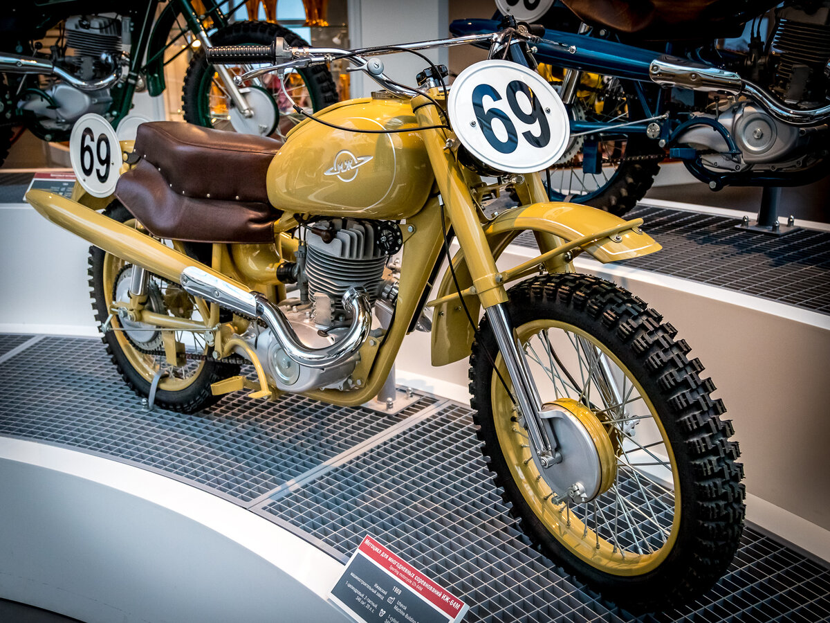В СССР многодневные мотогонки проводились с середины 30-х годов, это были заезды на местности, дальностью до 500 километров. После Великой Отечественной войны мотоспорт получил мощный толчок к развитию, к 1950 году в СССР в год выпускалось более 123.000 мотоциклов. В 1956 году советские мотоциклисты впервые приняли участие в международных многодневных гонках в ФРГ. Сегодня предлагаю ознакомится с советскими мотоциклами для многодневных гонок из экспозиции музейного комплекса УГМК. Мотоцикл для многодневных соревнований Иж-57М производства Ижевского машиностроительного завода, 1957 года. Оснащен 2-тактным, 1-циллиндровым двигателем объемом 346 см.куб. и мощностью 18 лошадиных сил. Мотоцикл для многодневных соревнований ИЖ-64М. Выпущен в 1969 году на Ижевском машиностроительном заводе. Двигатель 1-циллиндровый, 2-тактный, объем 346 см/куб, мощность 20 л.с. Мотоцикл для многодневных соревнований ИЖ-М11. Выпущен в 1977 году на Ижевском машиностроительном заводе. Двигатель 1-циллиндровый,