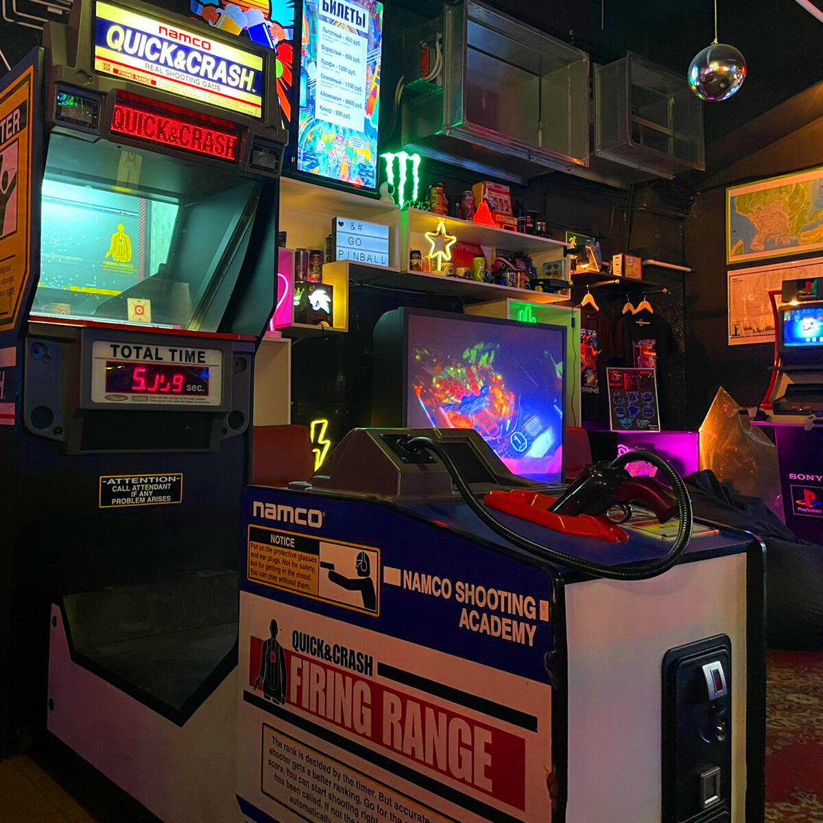 В Музей Пинбола GoPinball иногда приходят гости, которые спрашивают, есть ли аркады, где надо стрелять. Отвечаем: теперь есть! Новым экспонатом стала культовая игра "Quick & Crash" от Namco. Это не видеоигра, а световой тир, который проверяет игрока на скорость и меткость. Quick & Crash был выпущен в 1999-м году в Японии компанией Namco, которая подарила миру Tekken, Soulcalibur, Galaxian и Battle City (те самые "Танчики" с Денди). Но самая крупная франшиза, прославившая Namco - это, конечно, Pac-Man. Кстати, Pac-Man Battle Royale на четверых игроков, который встречает всех гостей Музея Пинбола, это тоже аркада от Namco. Quick & Crash всем своим видом ссылается на олдскульные механические стрелялки. У неё есть свои козыри в рукаве, первый из которых это подробная статистика, которую собирает игра. После каждого уровня (а их всего 4), ваш результат сравнивается с очками предыдущих ста игроков, и выдается надпись в духе "Текущий рейтинг: 10-й из 100". Свою позицию можно улучшать с ка