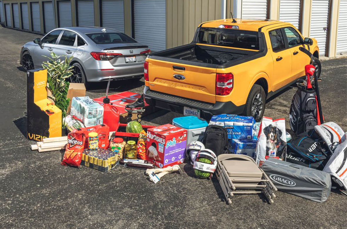 Если говорить коротко, то Civic лучше подходит для перевозки людей, а Maverick - для перевозки вещей. Впрочем, превосходство Maverick в перевозке грузов оказалось не таким большим, как ожидалось. В багажнике Maverick и на его задних сиденьях удалось поместить 28 коробок (коробки загружались не выше уровня стенок багажника), Civic смог вместить 20 коробок со сложенными сиденьями заднего ряда, что тоже неплохо. Багажник Civic имеет преимущество в том, что он закрывается, а значит, все ваши вещи будут защищены от любой непогоды. С другой стороны, перевозить мотоцикл или велосипеды намного проще в Maverick, и можно не бояться испачкать обивку багажника. То же самое касается и буксировки прицепа, с этим пикап также справится куда лучше, а еще на откидной крышке багажника Maverick можно сидеть или удобно расположить нужные вещи, если вы решите съездить отдохнуть на природу.