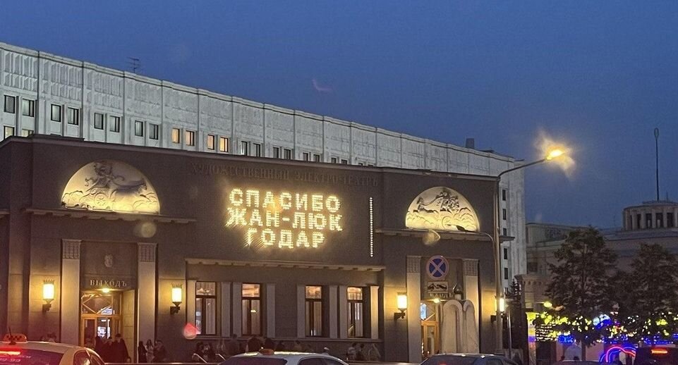 Адресованная умершему режиссеру Жану-Люку Годару надпись появилась на фасаде кинотеатра «Художественный» в Москве. Фото с места опубликовал Telegram-канал РИА «Новости». «Спасибо, Жан-Люк Годар», — гласит надпись. Годар скончался 13 сентября на 92-м году жизни. Он умер у себя дома в швейцарской коммуне Роль. Годар был режиссером-новатором, отличался радикальными взглядами и стоял у истоков «новой волны» французского кинематографа. За свою жизнь режиссер снял 75 картин. Последний фильм — «Книга образа» или «Образ и речь» — он представил публике четыре года назад. Работы Годара открыли миру многих актеров, в том числе и Жан-Поля Бельмондо. Влияние режиссера на мировое киноискусство трудно переоценить. Годару никогда не была чужда русская культура. Он любил и знал ее, а второй женой режиссера стала Анна Вяземски, правнучке князя и астраханского казачьего атамана Леонида Вяземского. По информации газеты Libération, которая ссылается на окружение режиссера, Годар ушел из жизни при помощи эв