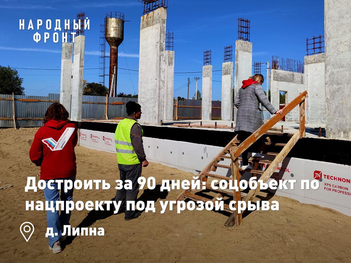 Мы продолжаем контролировать объекты, возводимые у нас в регионе по национальному проекту. Один из них располагается в деревне Липна – досуговый центр на 130 мест. Сдать его должны были ещё в прошлом году. 55 млн рублей стоимость контракта, на секундочку. Но возвели лишь фундамент. От услуг недобросовестного подрядчика «ГрандСтрой» отказались. Летом 2022 года достраивать досуговый центр пришёл новый подрядчик «Виту Проект». Приступил к работам с энтузиазмом, но запала надолго не хватило. Каждый две недели мы приезжали на объект и смотрели, а что же изменилось – а почти ничего. Лишь мелкие детали бросались в глаза, но глобально стройка встала. До сдачи объекта остаётся всего лишь 3 месяца, но рабочих на стройки по-прежнему нет. Наши эксперты уверены, что в срок объект сдан не будет. Вопрос сейчас скорее стоит не в том, кто виноват, а что делать? Мы предлагаем чиновникам поторопить подрядчика всеми доступными способами. Под угрозой всё-таки обещанный жителям социальный объект.