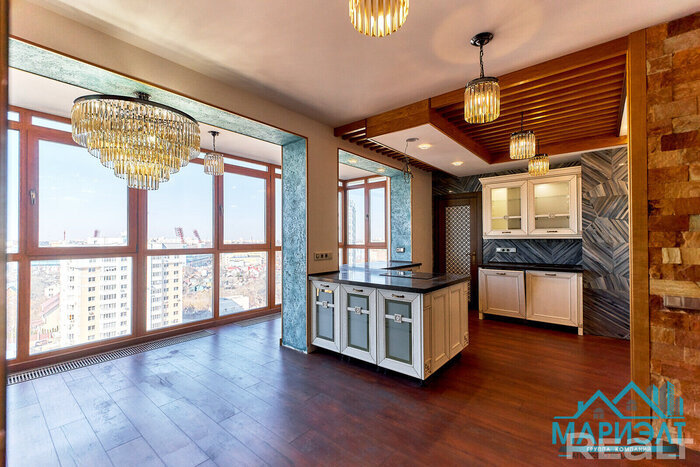 Новый ремонт, последний этаж, окна в пол и вид на реку — это ли не мечта любого горожанина? Что ж, мы нашли такую квартиру в Гомеле, и сейчас она продается. Располагается жилье в Центральном районе города, неподалеку от набережной Сожа и Гомельского дворцово-паркового ансамбля. Кстати, на данный момент — это самая дорогая квартира, выставленная на продажу в Гомеле. Смотрим. 5-комнатная квартира для большой семьи с панорамным видом на город, парк и реку Сож находится на улице Волотовской, 11. Жилье располагается на последнем этаже 11-этажного каркасно-блочном дома 2016 года постройки. Площадь квартиры − 173 «квадрата». Здесь есть большая кухня-гостиная, 4 изолированные спальни, 2 полноценных просторных санузла, 2 вместительные гардеробные и 3 балкона. Комфортный климат в помещении гарантируют 4 кондиционера и конвекторное отопление. Как сообщается в объявлении, в квартире сделан дизайнерский ремонт премиального уровня. Смотреть планировку
