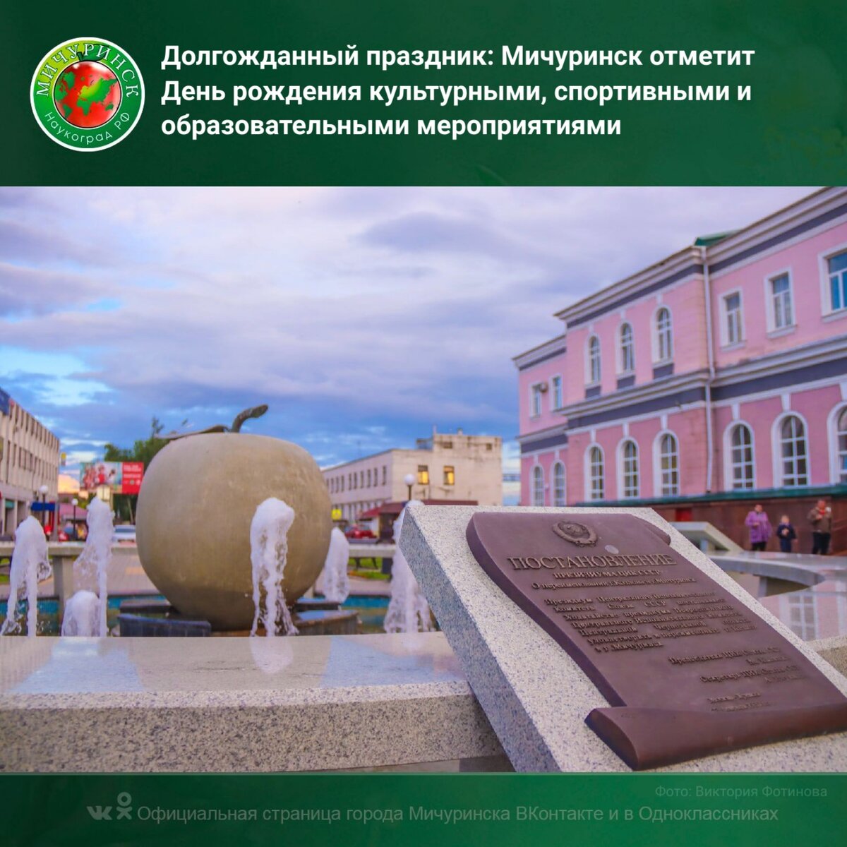 🍎 Долгожданный праздник: Мичуринск отметит День рождения культурными, спортивными и образовательными мероприятиями